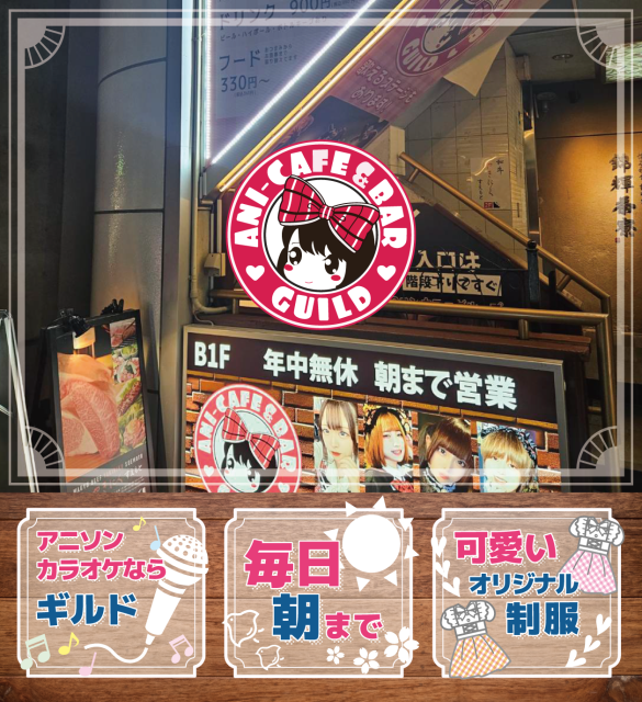 アニソンバーギルド名古屋店はアニメやコスプレ、アイドル、サブカルチャーなど共通の好きなものを持つお客様とキャストとの楽しいお店です!